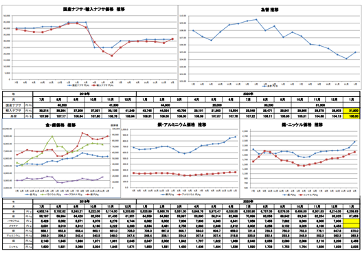 2月度原油・金属・為替相場動向を更新しました。
